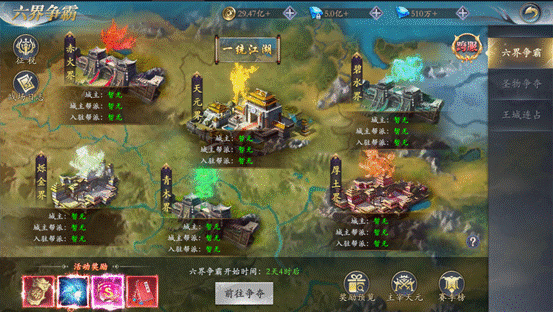 3. 活动结束后,各城池中帮派积分最高的有可获得对应城池的归属